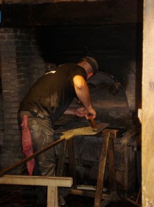 The bread oven cottage is small and dark, and the bread oven is enormous, filling half of the cottage. It’s the kind of oven Grimm’s witch might have tried to push Hansel and Gretel into. Our children are sceptical, and they keep their distance. The boulanger is large and muscular and has a booming kind of voice. He starts us from the beginning, showing how he heats the oven and removes the coal and ash. It’s hard and hot work, requiring patience.