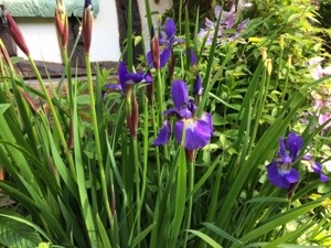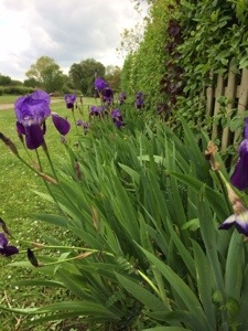 This month, it’s the real thing. Irises at every turn. Yellow by the side of the road, indigo along the drive and deep purple and bee-attracting at the end of the garden. The photos don’t quite do them justice.