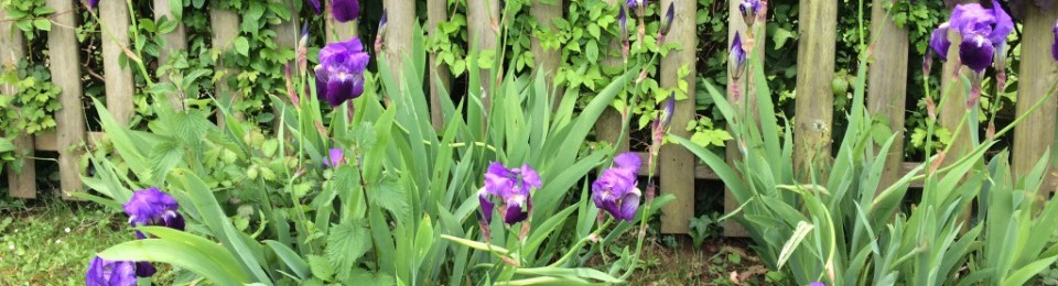 This month, it’s the real thing. Irises at every turn. Yellow by the side of the road, indigo along the drive and deep purple and bee-attracting at the end of the garden. The photos don’t quite do them justice.