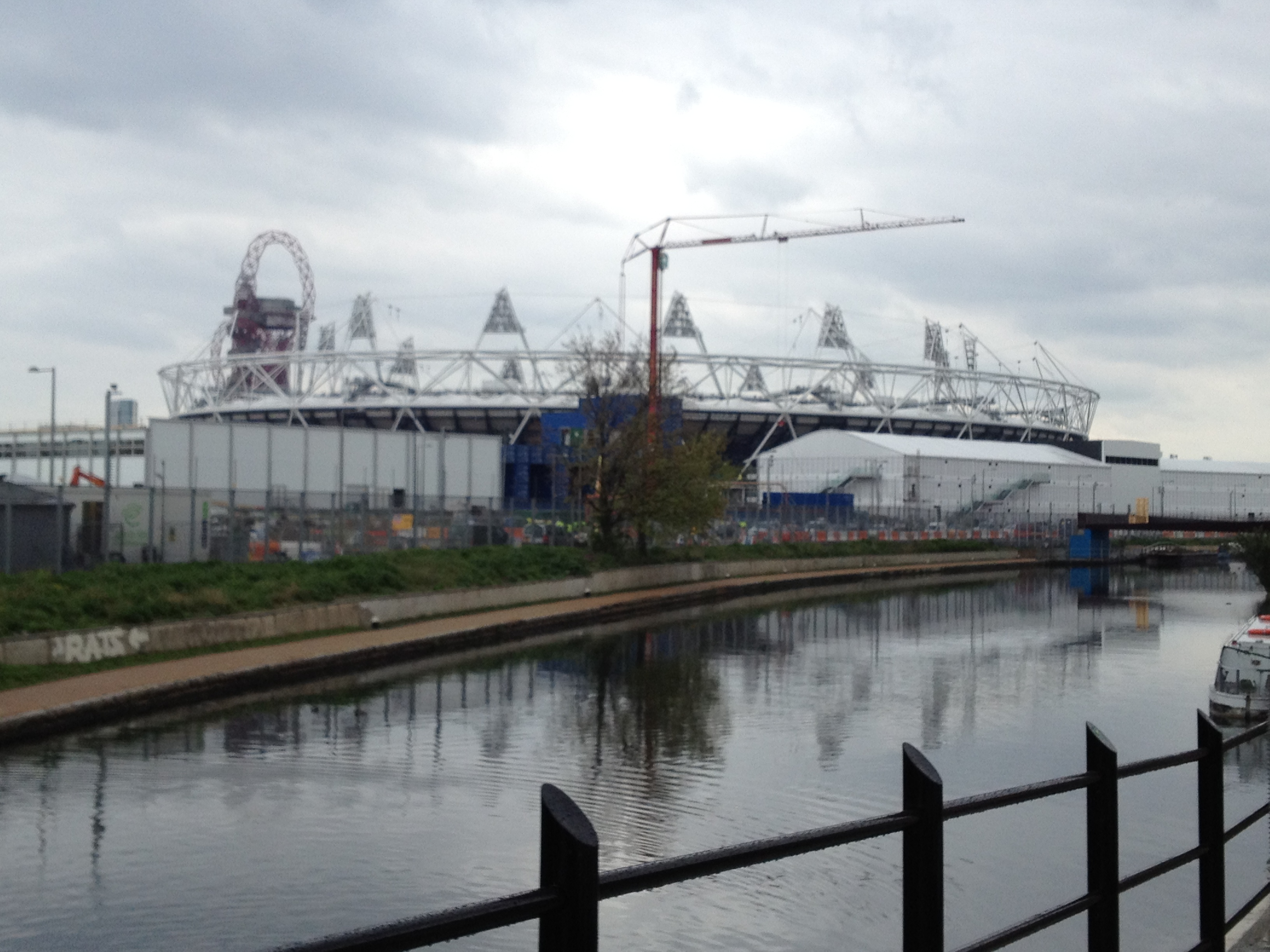 We walked along the Lee Navigation, a system of canals built out of from the River Lea that once served industry, and are now the heart-center of Olympic development. This provided some excellent views of the main Olympic stadium, where sound checks were underway all afternoon.