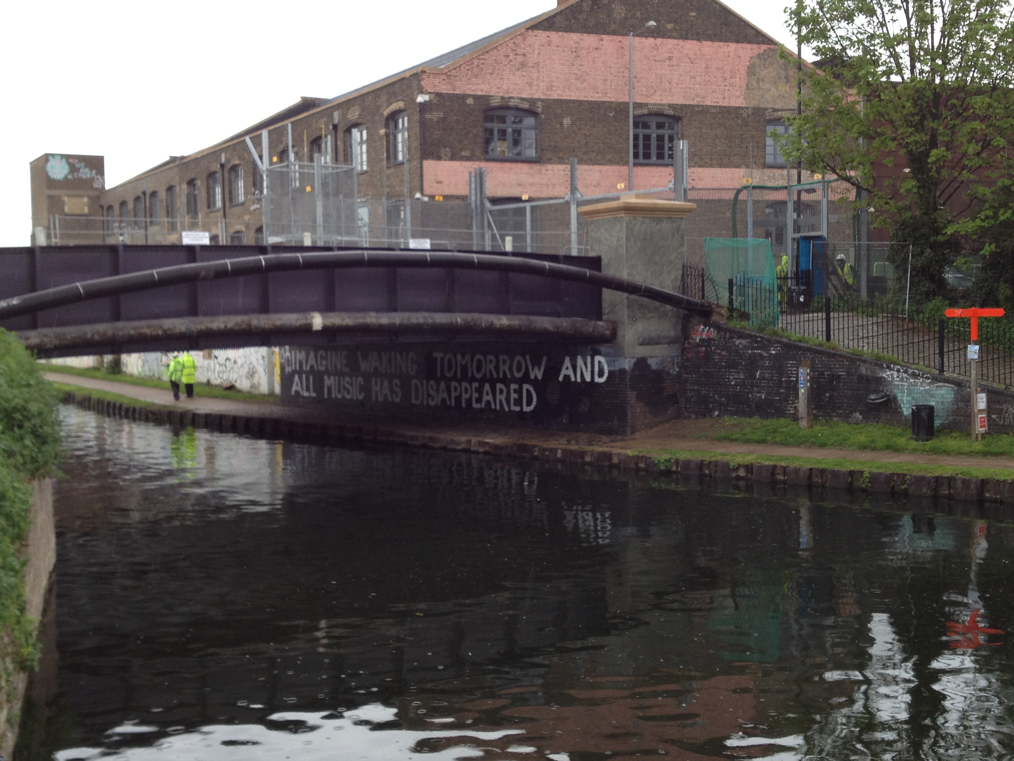 River Lea (Lee), East London, Graffiti Imagine Waking Tomorrow and All Music Has Disappeared