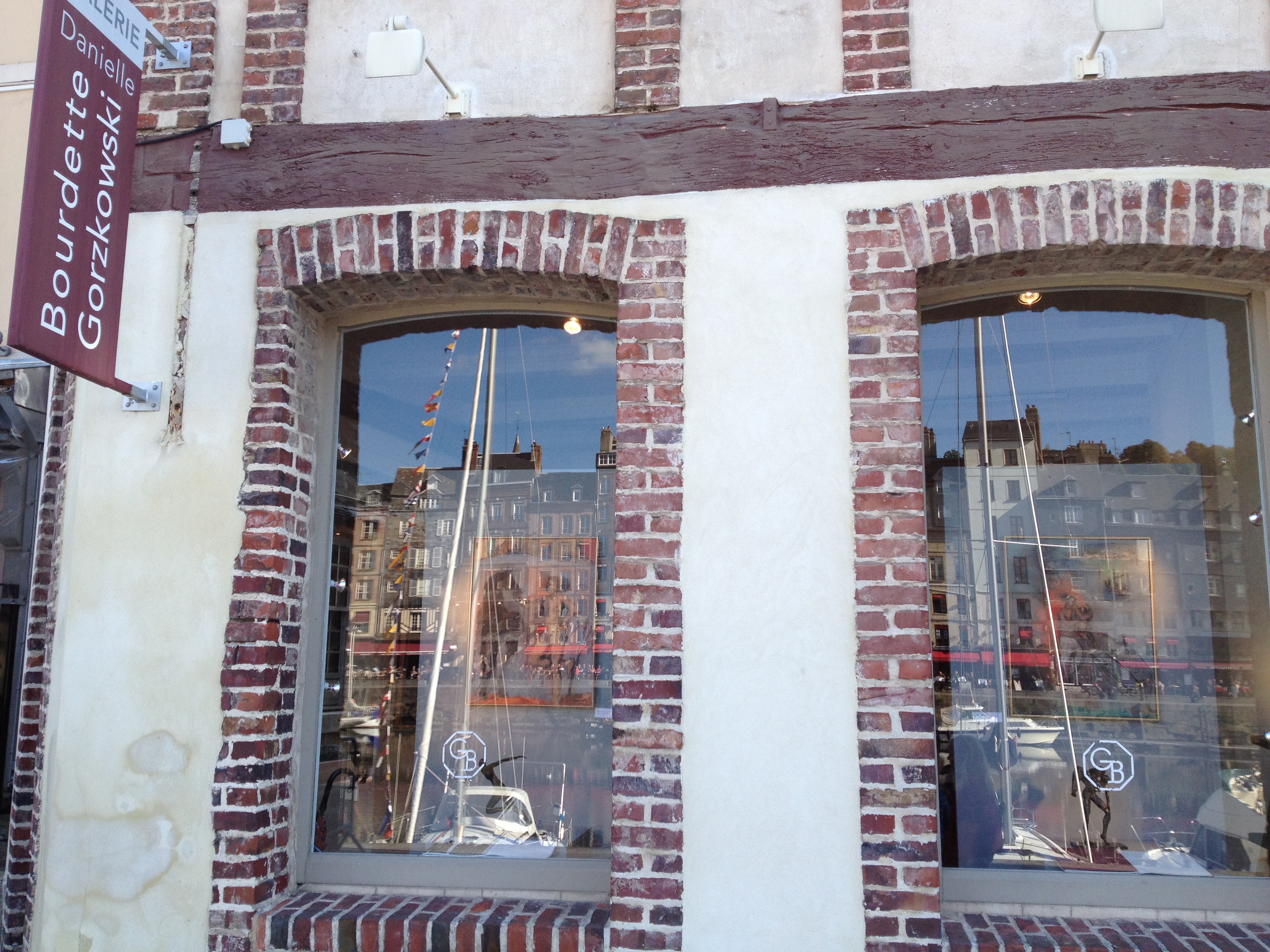 Honfleur is a lovely place to wander through. In the spring and summer there is an old-fashioned carousel by the harbour. (We are becoming aficionados of carousels in Normandy: there is another in Le Touquet which I have written about here.) There are many interesting shops to explore – gourmet food; incredible chocolate shops with elaborate seasonal creations in their windows; and a host of art galleries.