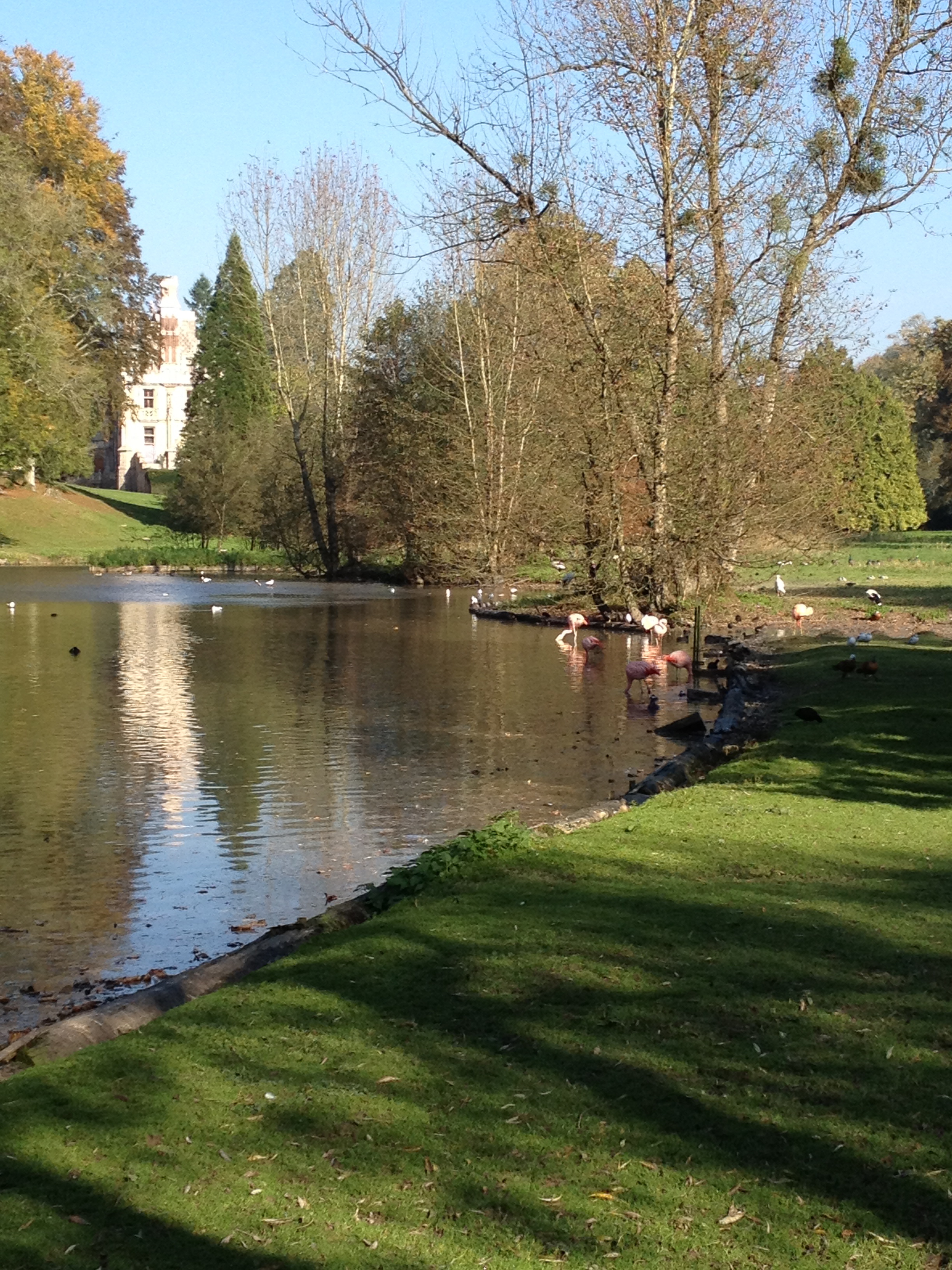 And what a collection! Clères is famous for its birds but there are also mammals: peacocks, pelicans, cranes, ibis, gibbon, wallabies, antelopes and many more. Most live in the parkland in semi-freedom: there are few visible cages or barriers. It took us about two hours to walk around the gardens, with many stops to climb trees, watch flamingos balancing on their spindly legs and pelicans dipping their droopy beaks.